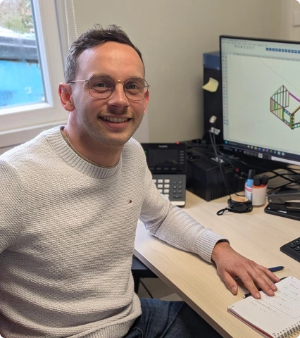 Matthias a rejoint notre équipe en tant que dessinateur-métreur, fort de plusieurs années d’expérience dans le secteur. Passionné de dessin technique avec une spécialisation en construction bois, il apprécie la diversité des projets et la rigueur qu’ils exigent. En dehors du travail, Matthias est un adepte du padel et de la course à pied. Curieux et manuel, il aime bricoler et accorde une grande importance aux moments partagés avec ses proches.